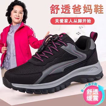 Lidk夏季老人鞋男防滑软底休闲运动爸爸鞋子网面轻便父亲中老年健步鞋 9109女款黑梅红单里 36